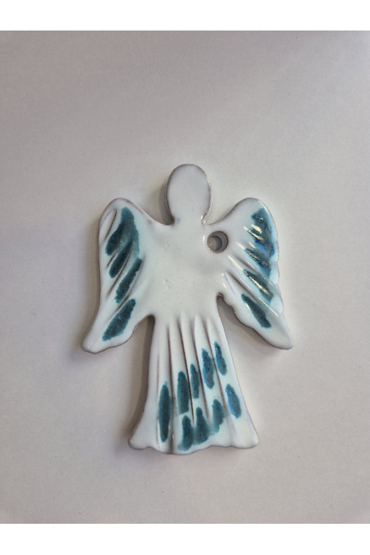Zawieszka ANIOŁEK "Biel z turkusem". Ręcznie robiona ceramika z Krety, 1193