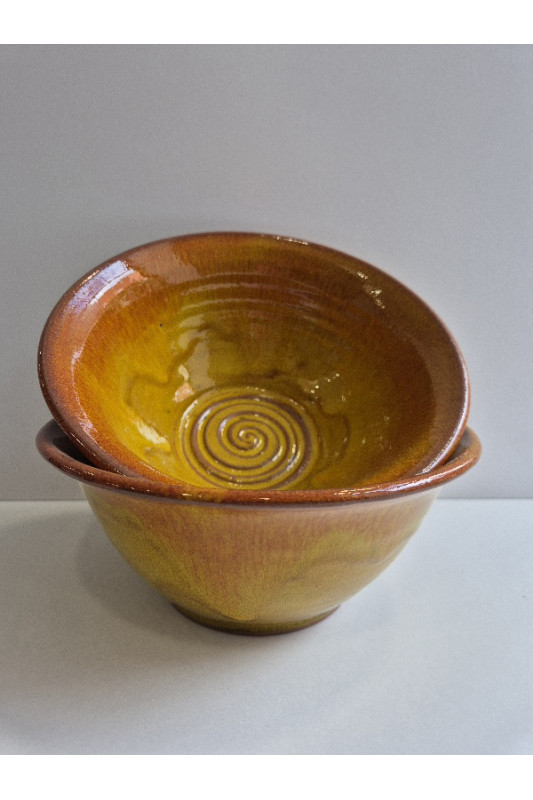 Miska mała wywinięta "Żółty z pomarańczą''. Ręcznie robiona ceramika z Krety, 1222