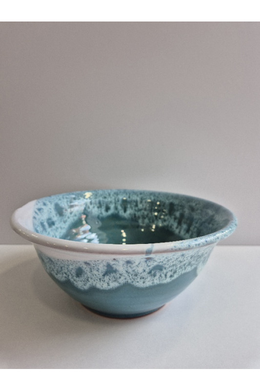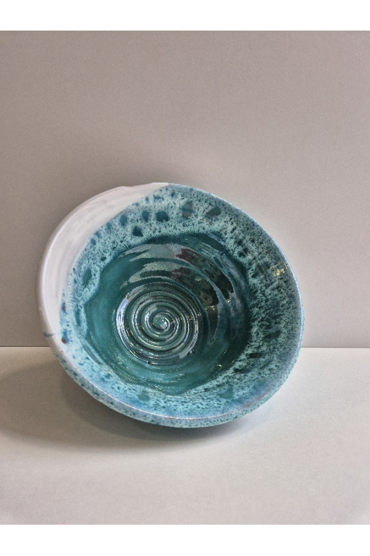 Miska mała wywinięta "Turkus z bielą''. Ręcznie robiona ceramika z Krety, 1225