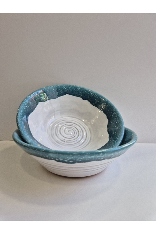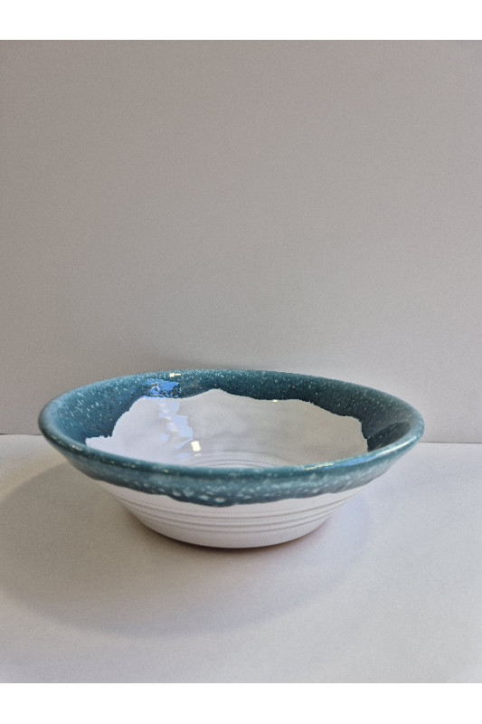 Półmisek mniejszy "Biel z turkusem''. Ręcznie robiona ceramika z Krety, 1200