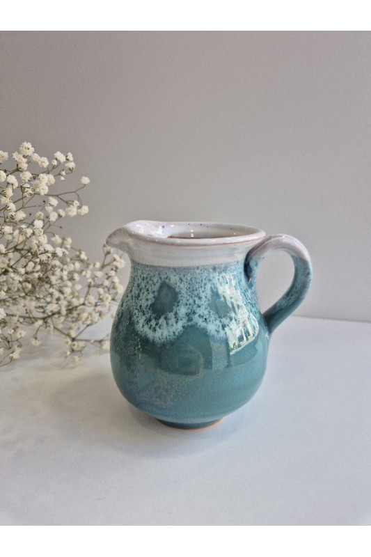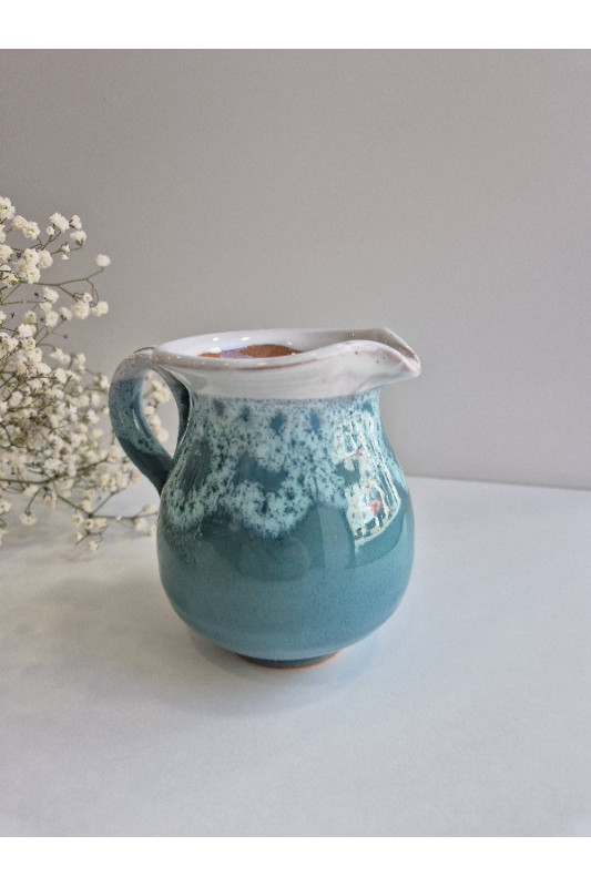 Dzbanek mlecznik "Turkus z bielą". Ręcznie robiona ceramika z Krety, 110