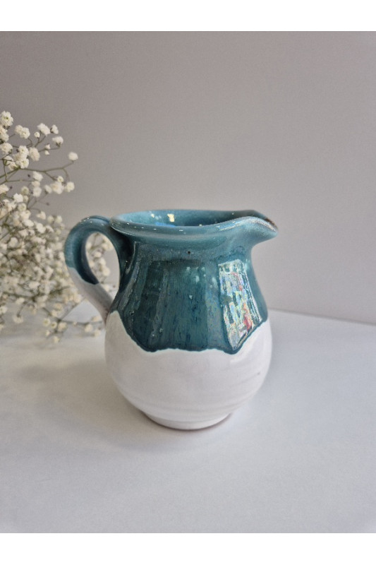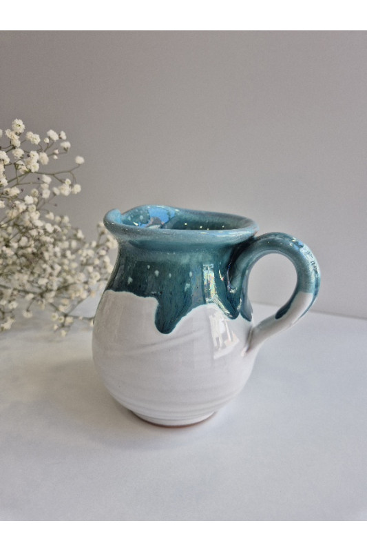 Dzbanek mlecznik "Biel z turkusem". Ręcznie robiona ceramika z Krety, 111