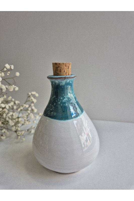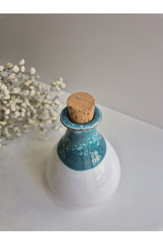 Dzbanek kropla "Biel z turkusem". Ręcznie robiona ceramika z Krety, 124