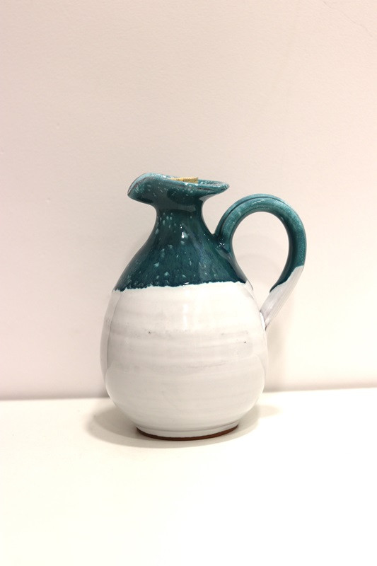 Dzbanek na oliwe III "Biały z turkusem". Ręcznie robiona ceramika z Krety, 258