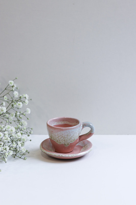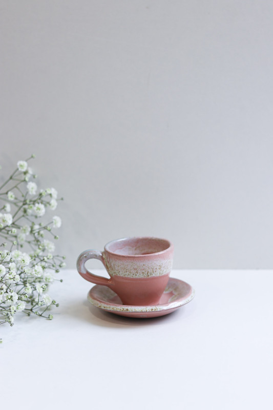 Filiżanka espresso prosta "Róż z beżem''. Ręcznie robiona ceramika z Krety, 32