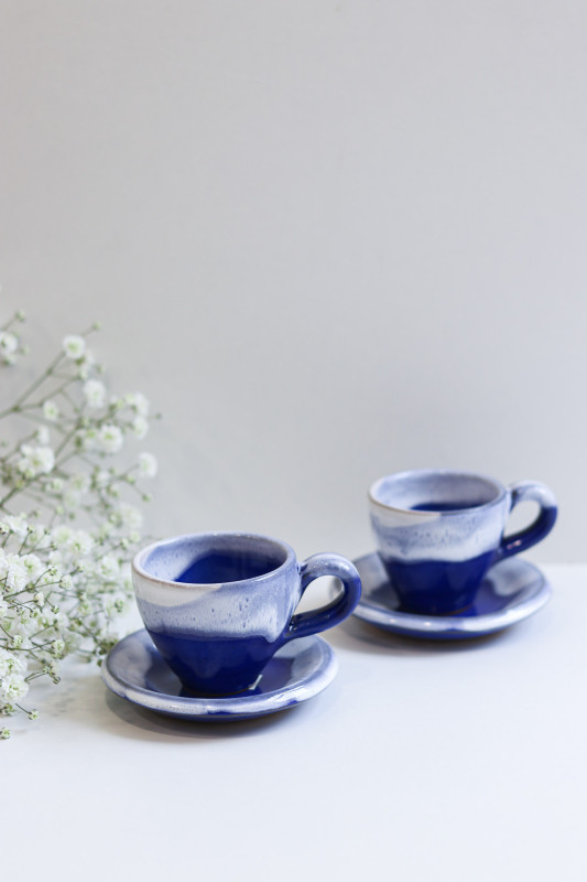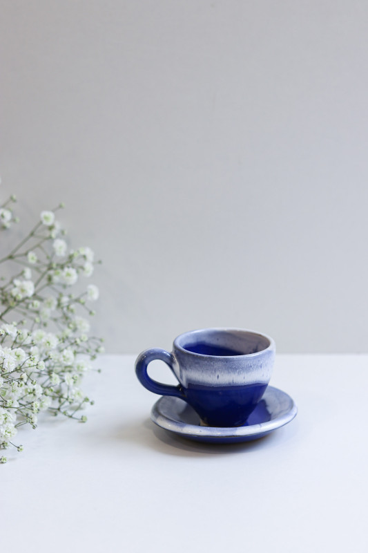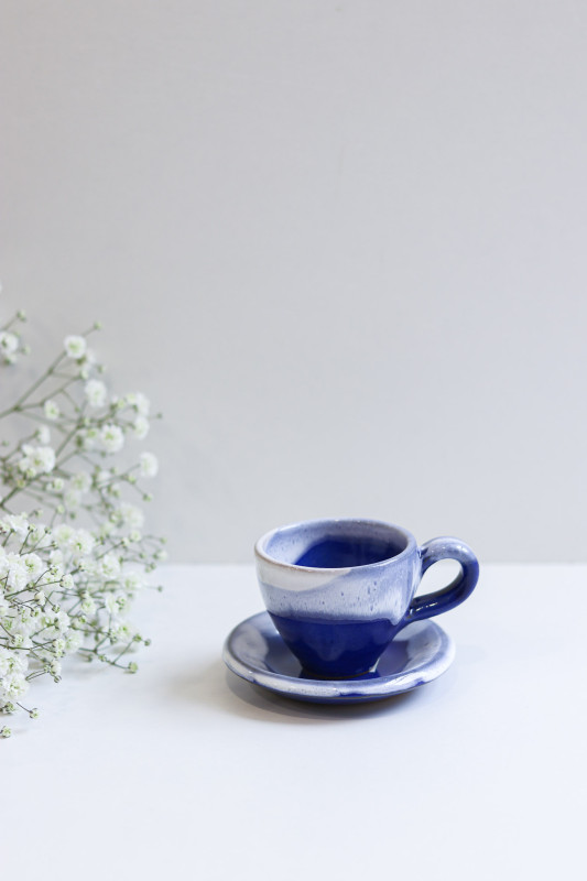 Filiżanka espresso prosta "Kobalt z bielą''. Ręcznie robiona ceramika z Krety, 33