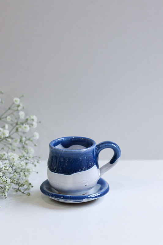 Filiżanka espresso Beczułka "Biała z niebieskim''. Ręcznie robiona ceramika z Krety, 72