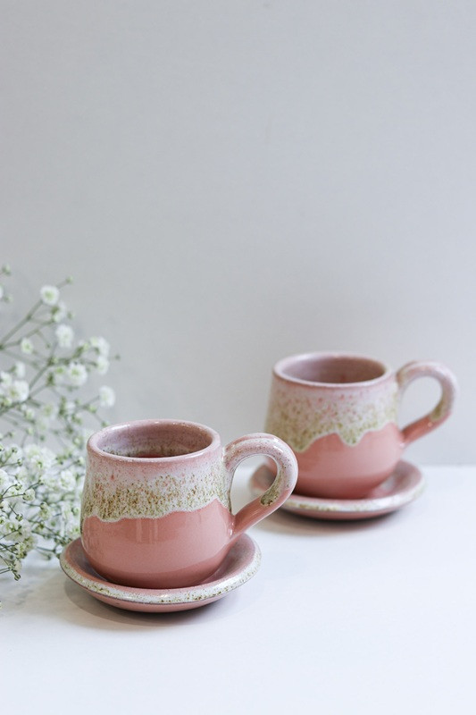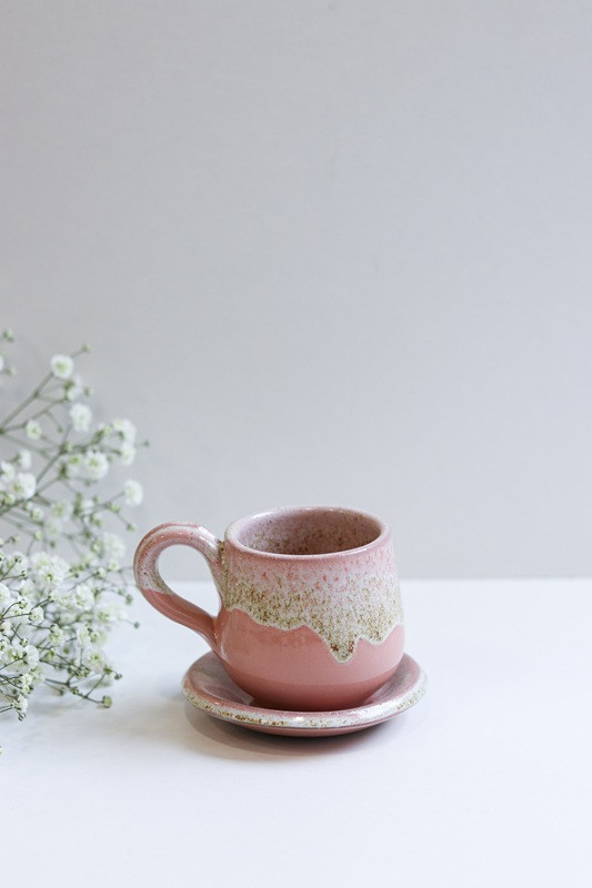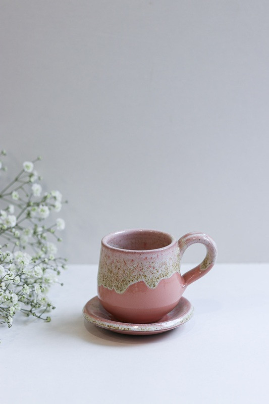 Filiżanka espresso Beczułka "Róż z beżem''. Ręcznie robiona ceramika z Krety, 78