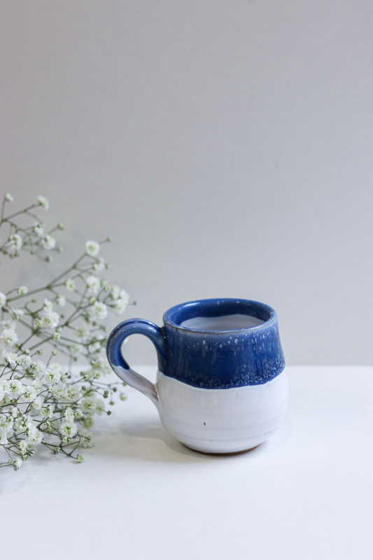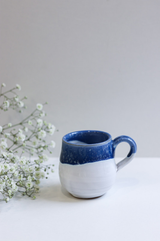 Kubek Beczułka najmniejszy "Biały z niebieskim''. Ręcznie robiona ceramika z Krety, 402