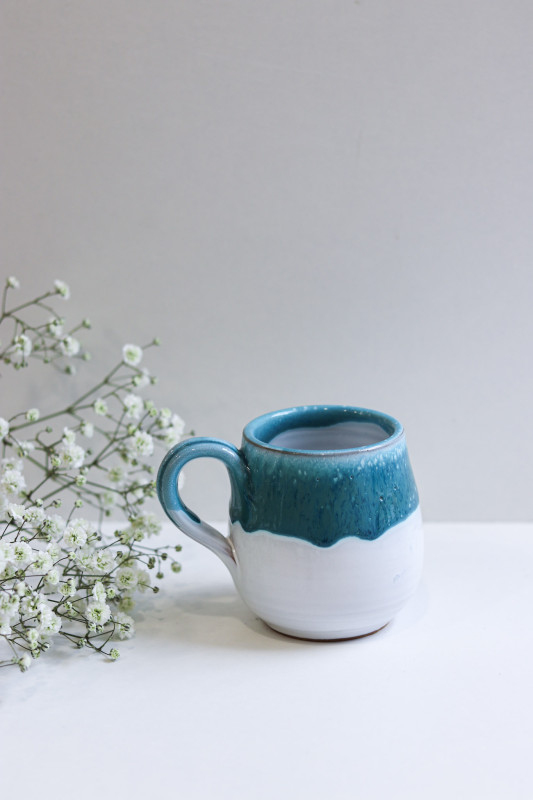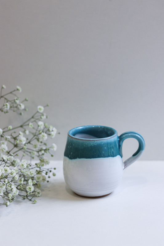 Kubek Beczułka najmniejszy "Biel z turkusem''. Ręcznie robiona ceramika z Krety, 404