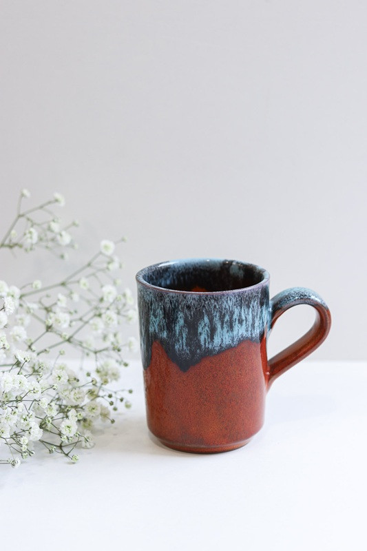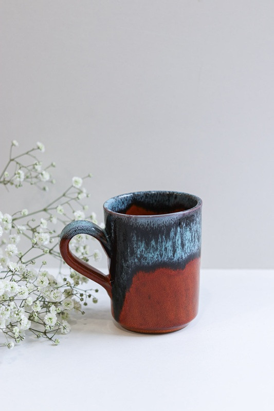 Kubek prosty "Czerwień z niebieskim''. Ręcznie robiona ceramika z Krety, 533