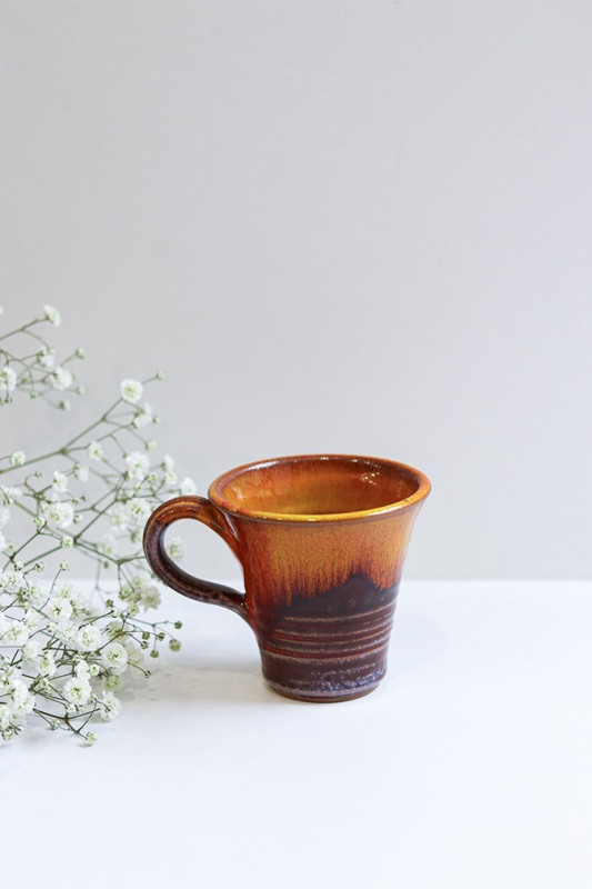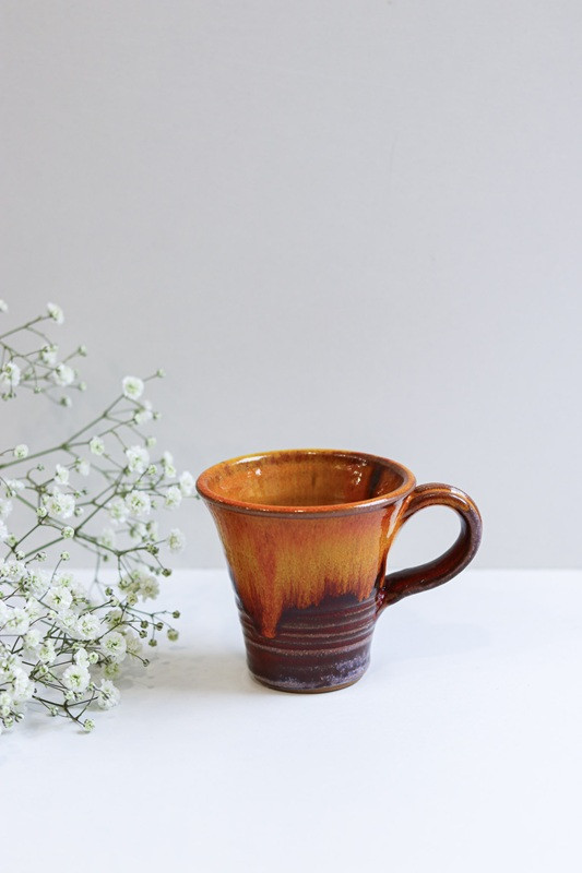 Kubek 'Trąbka' mniejszy "Czerwień z żółtym''. Ręcznie robiona ceramika z Krety, 500