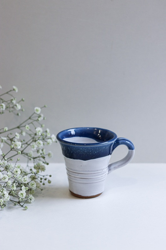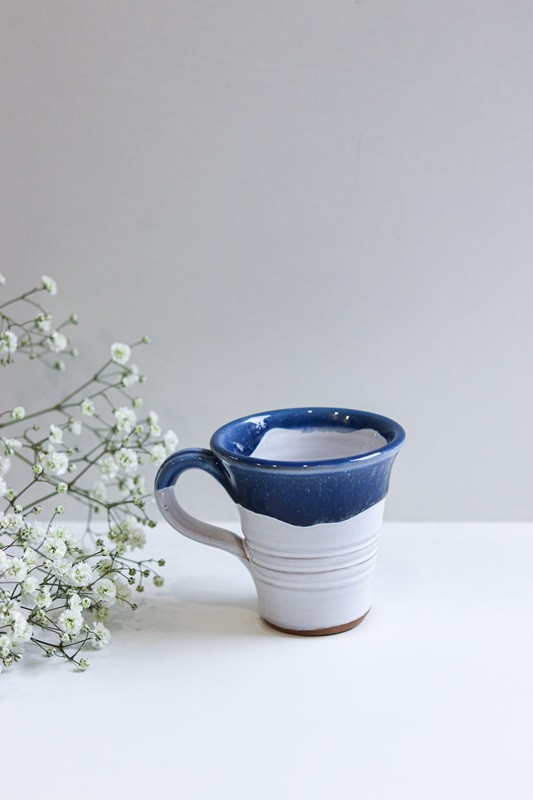 Kubek 'Trąbka' mniejszy "Biały z niebieskim''. Ręcznie robiona ceramika z Krety, 503