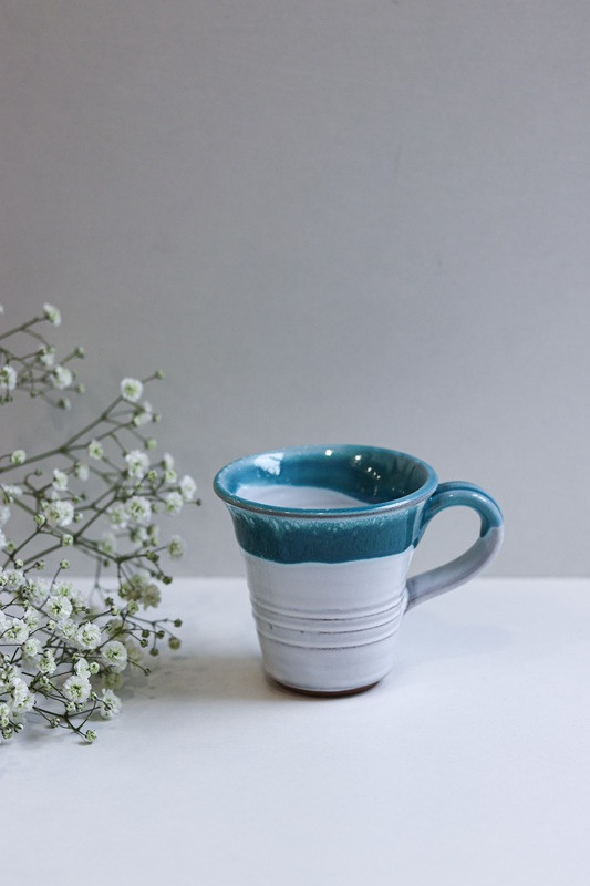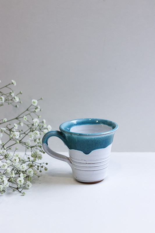 Kubek 'Trąbka' mniejszy "Biały z turkusem''. Ręcznie robiona ceramika z Krety, 513