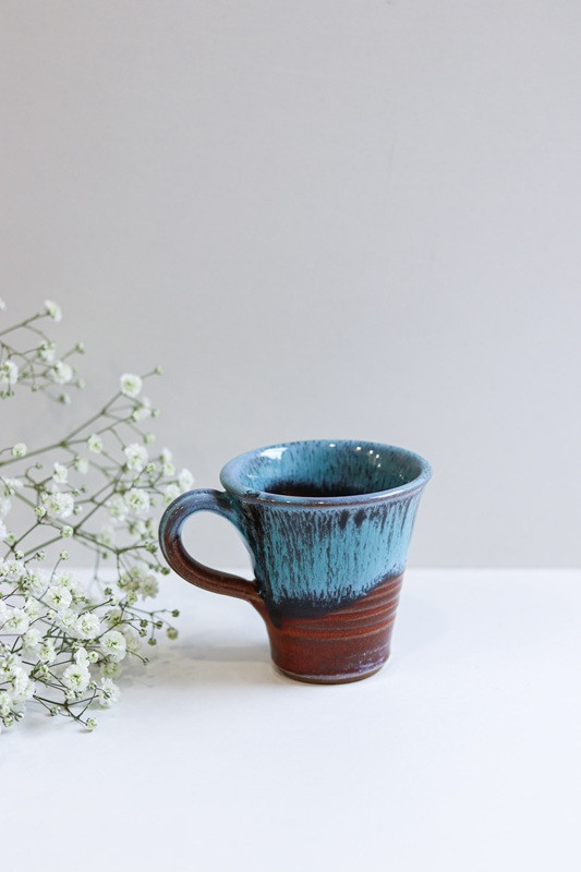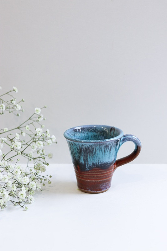 Kubek 'Trąbka' mniejszy "Czerwień z niebieskim''. Ręcznie robiona ceramika z Krety, 505