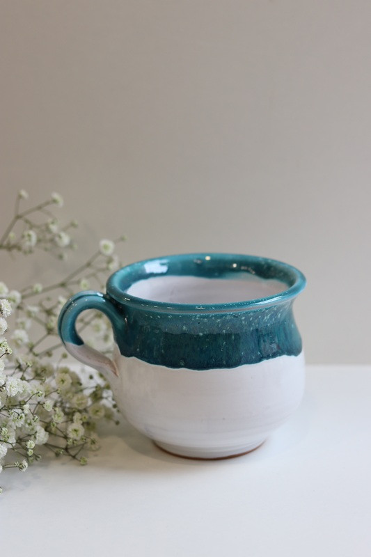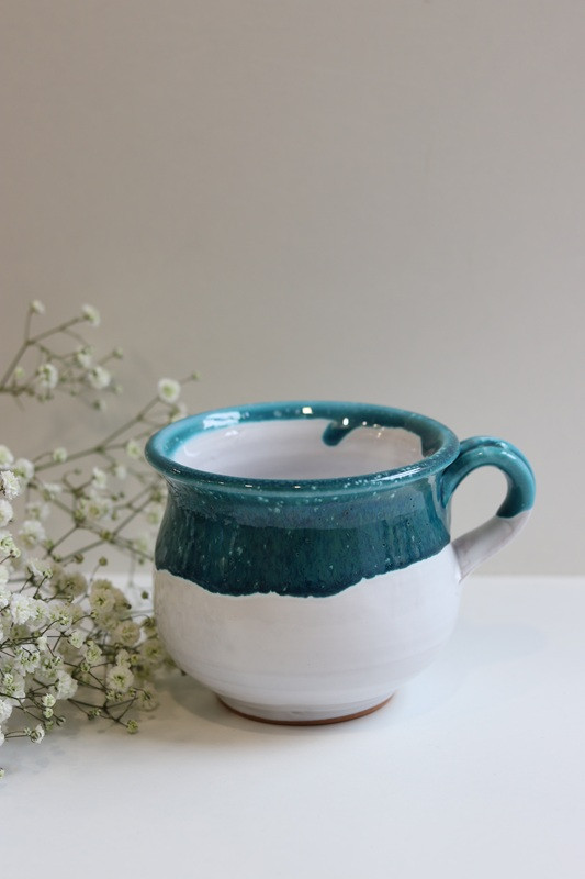 Kubek 'Beczułka' duży "Biel z turkusem''. Ręcznie robiona ceramika z Krety, 570
