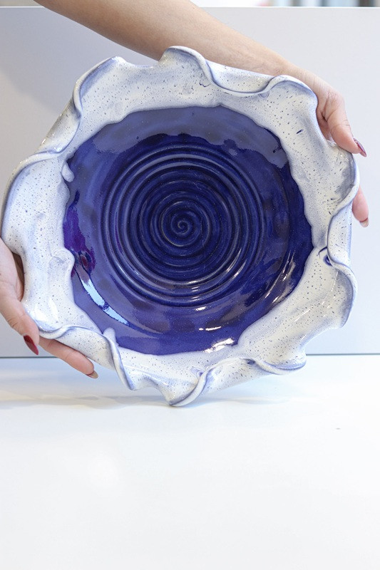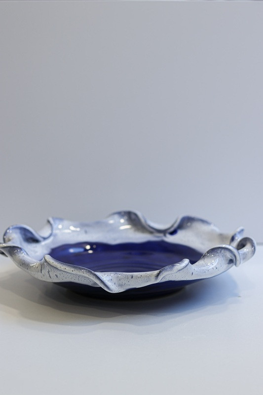 Wyjątkowy, ręcznie robiony talerz z falą na brzegu.