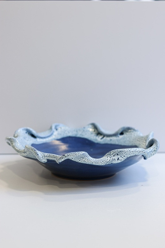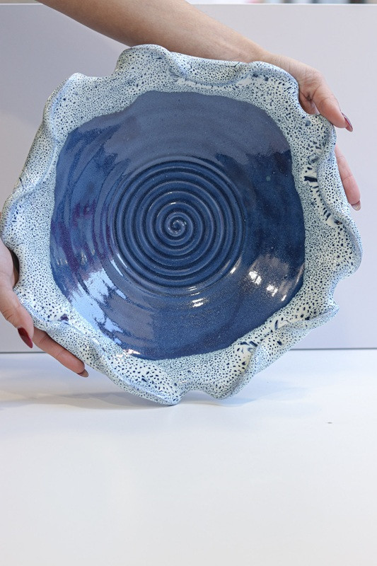 Wyjątkowy, ręcznie robiony talerz z falą na brzegu.