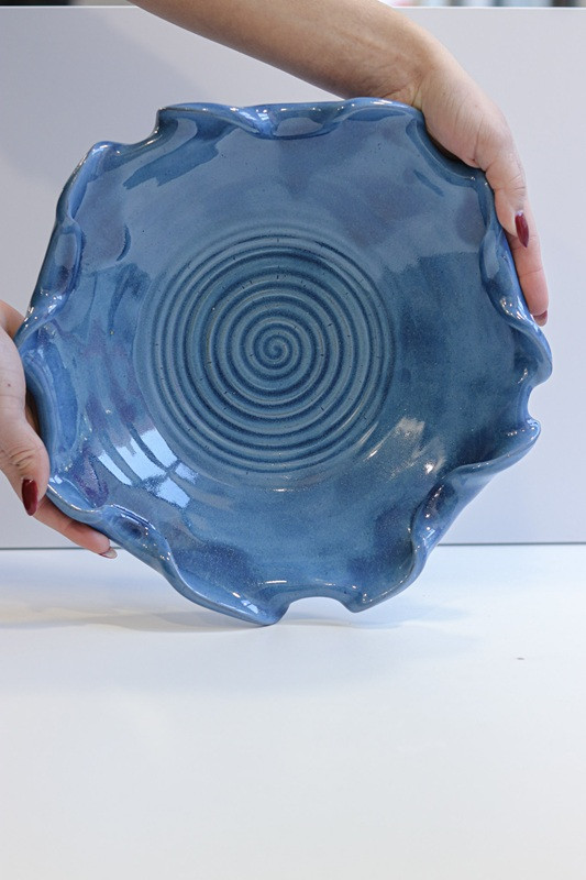 Wyjątkowy, ręcznie robiony talerz z falą na brzegu.