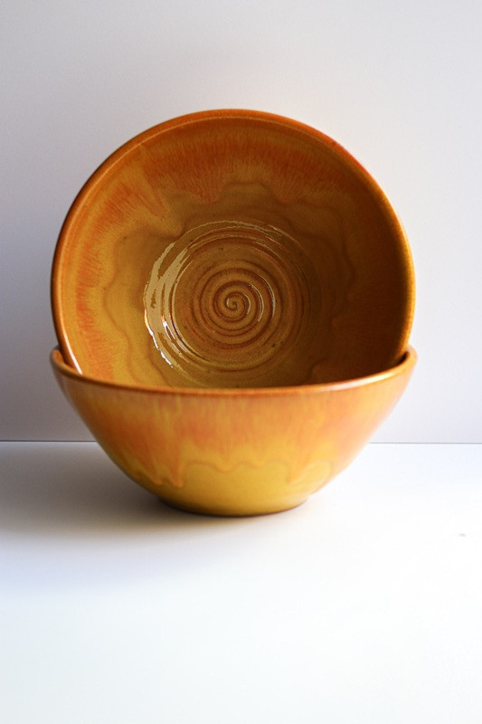 Miska duża prosta "Żółty z pomarańczowym''. Ręcznie robiona ceramika z Krety, 732