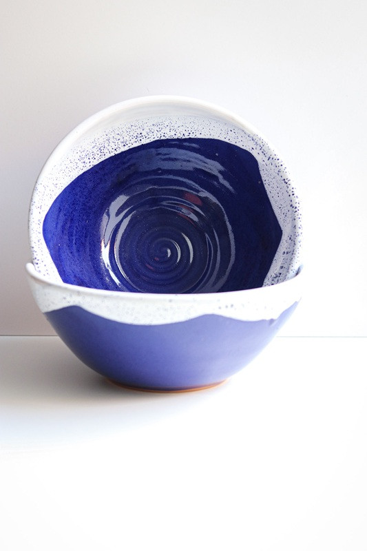 Miska duża prosta "Kobalt z bielą''. Ręcznie robiona ceramika z Krety, 740