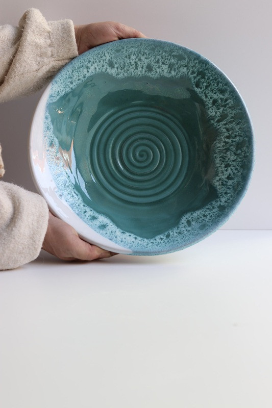 Półmisek duży "Turkus z bielą''. Ręcznie robiona ceramika z Krety, 540