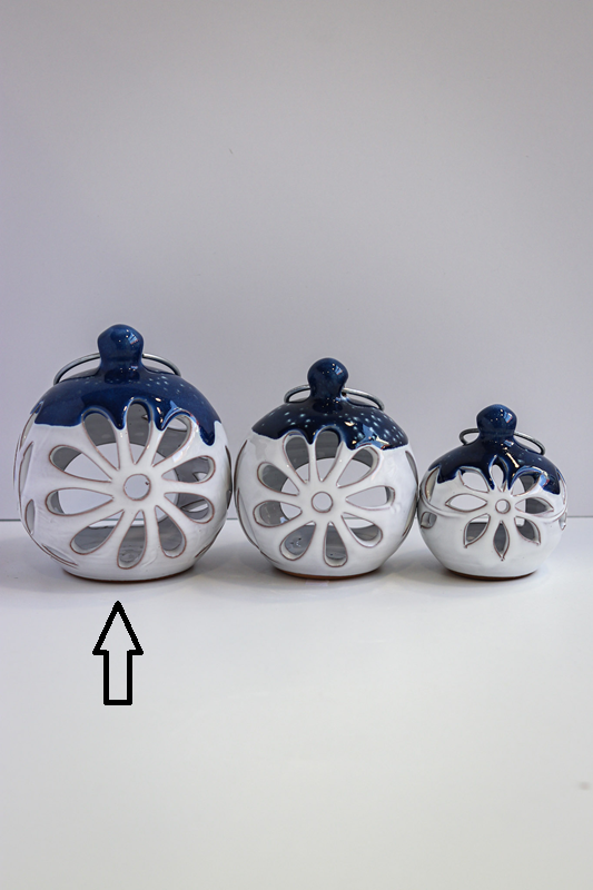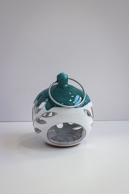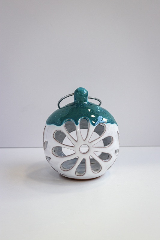Lampion duży Margaretka "Biel z turkusem''. Ręcznie robiona ceramika z Krety, 767
