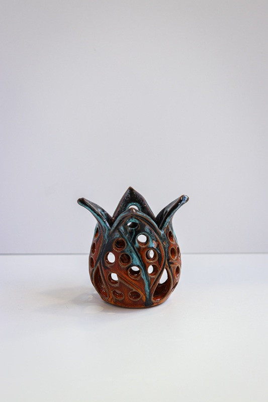 Lampion Tulipan "Czerwień z niebieskim''. Ręcznie robiona ceramika z Krety, 800