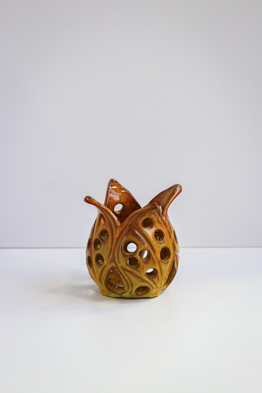 Lampion Tulipan "Żółty z pomarańczą''. Ręcznie robiona ceramika z Krety, 811