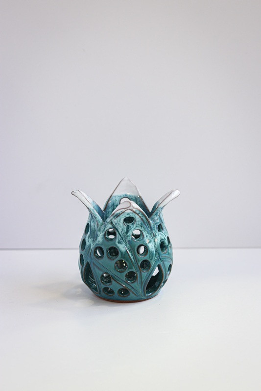 Lampion Tulipan "Turkus z bielą''. Ręcznie robiona ceramika z Krety, 814