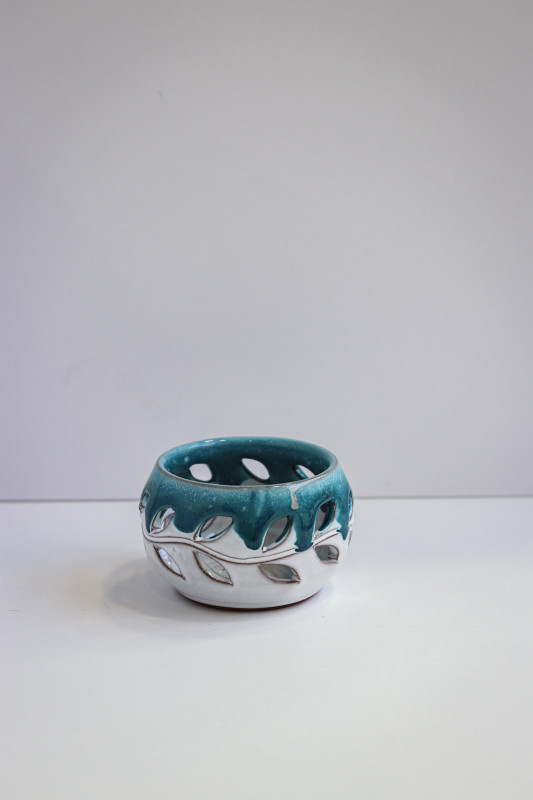 Lampion Oliwka "Biały z turkusem''. Ręcznie robiona ceramika z Krety, 827
