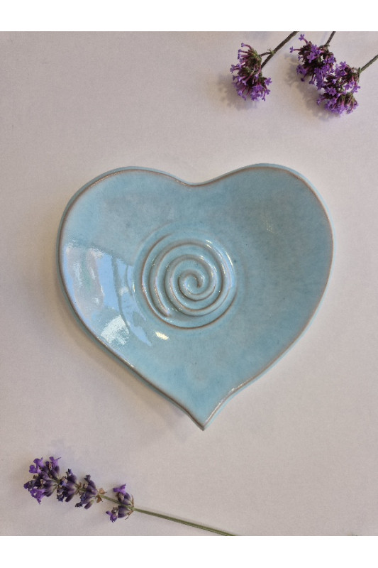 Talerzyk serce "Błękit". Ręcznie robiona ceramika z Krety, 07