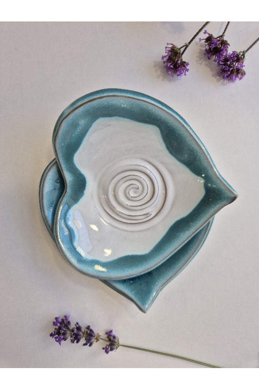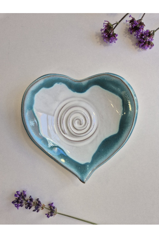 Talerzyk serce "Biel z turkusem". Ręcznie robiona ceramika z Krety, 011