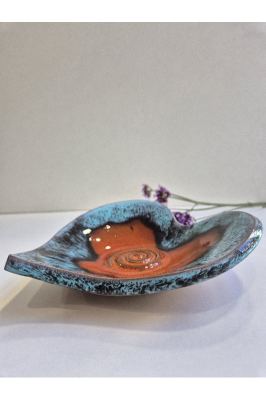 Talerzyk serce większe "Czerwień z niebieskim". Ręcznie robiona ceramika z Krety, 716
