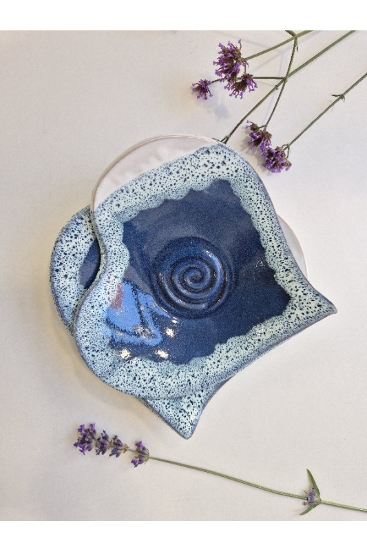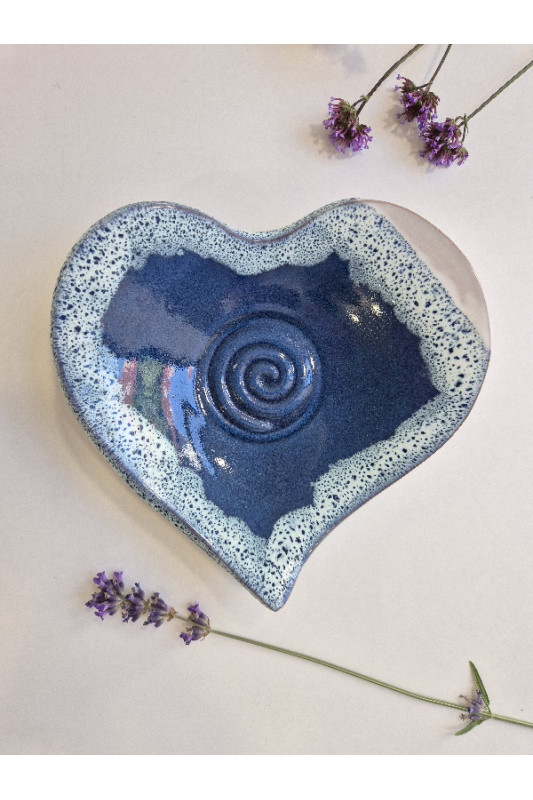 Talerzyk serce większe "Niebieski z bielą". Ręcznie robiona ceramika z Krety, 720