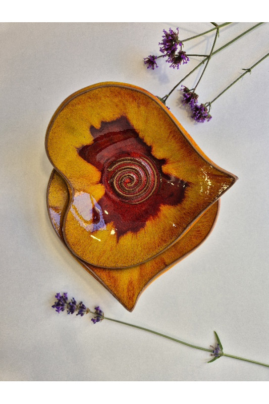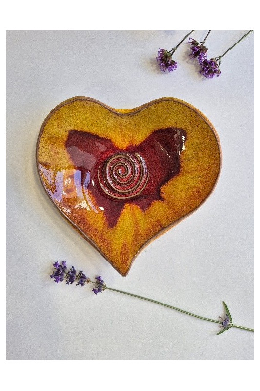 Talerzyk serce większe "Czerwień z żółtym". Ręcznie robiona ceramika z Krety, 723