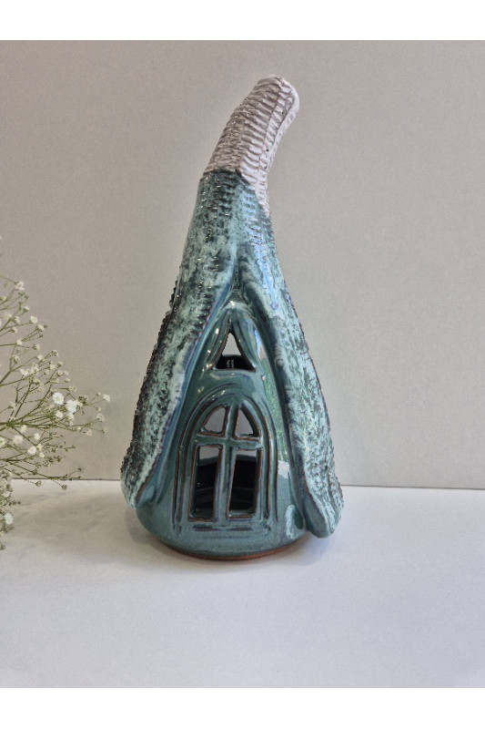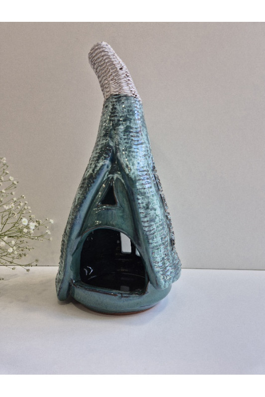 Lampion Chatka Krasnoludka "Turkus z bielą''. Ręcznie robiona ceramika z Krety, 3002
