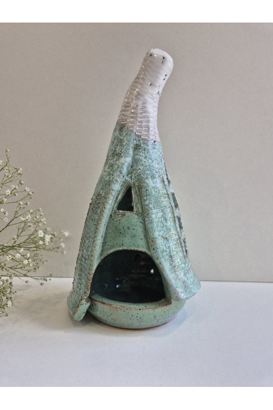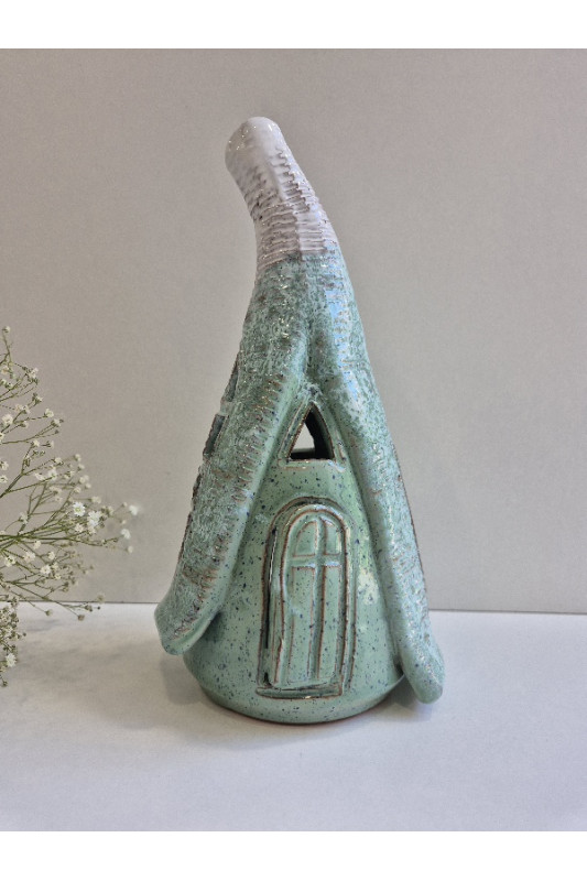 Lampion Chatka Krasnoludka "Zieleń z bielą''. Ręcznie robiona ceramika z Krety, 3001