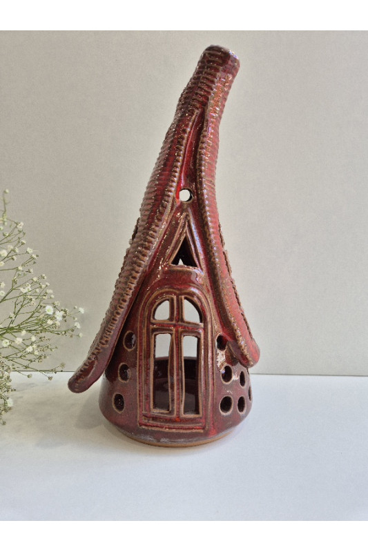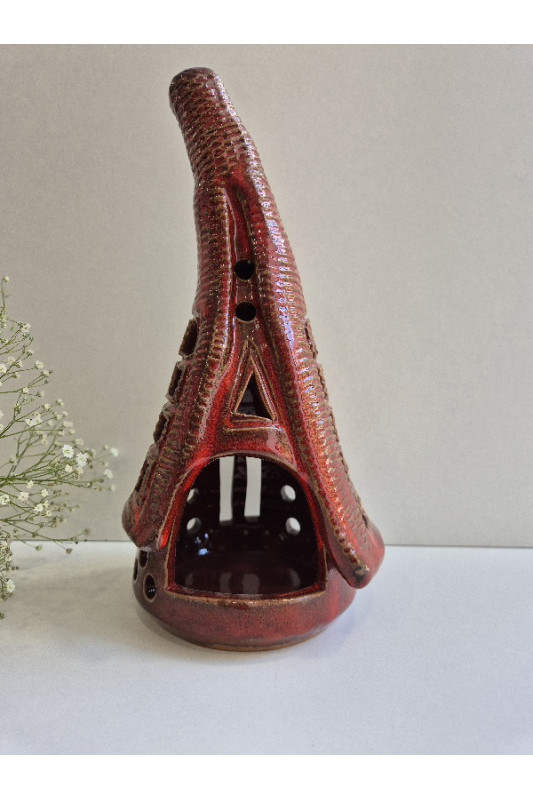 Lampion Chatka Krasnoludka "Czerwień''. Ręcznie robiona ceramika z Krety, 3003