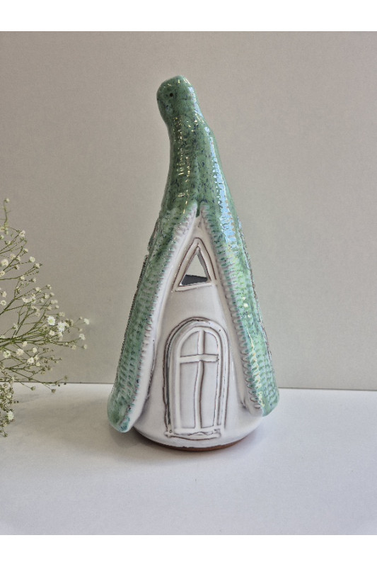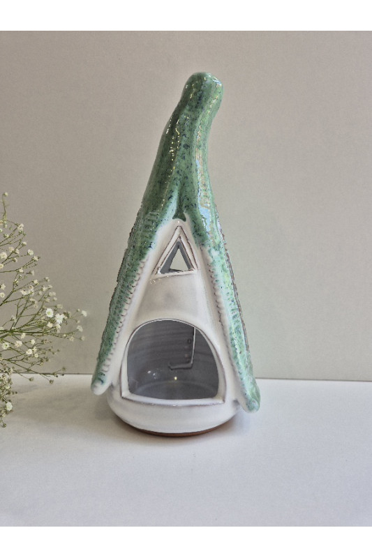 Lampion Chatka Krasnoludka "Biel z zielenią''. Ręcznie robiona ceramika z Krety, 3005