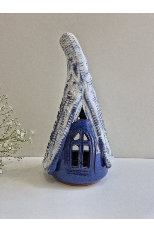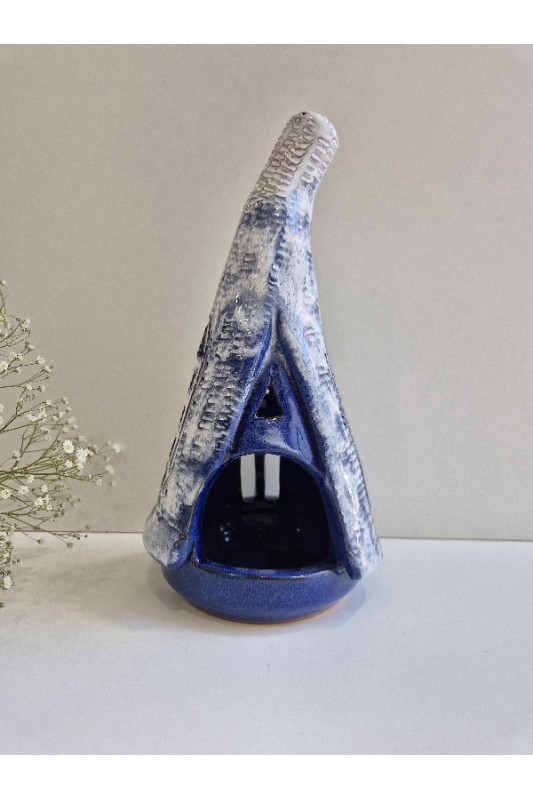 Lampion Chatka Krasnoludka "Kobalt z bielą''. Ręcznie robiona ceramika z Krety, 3008