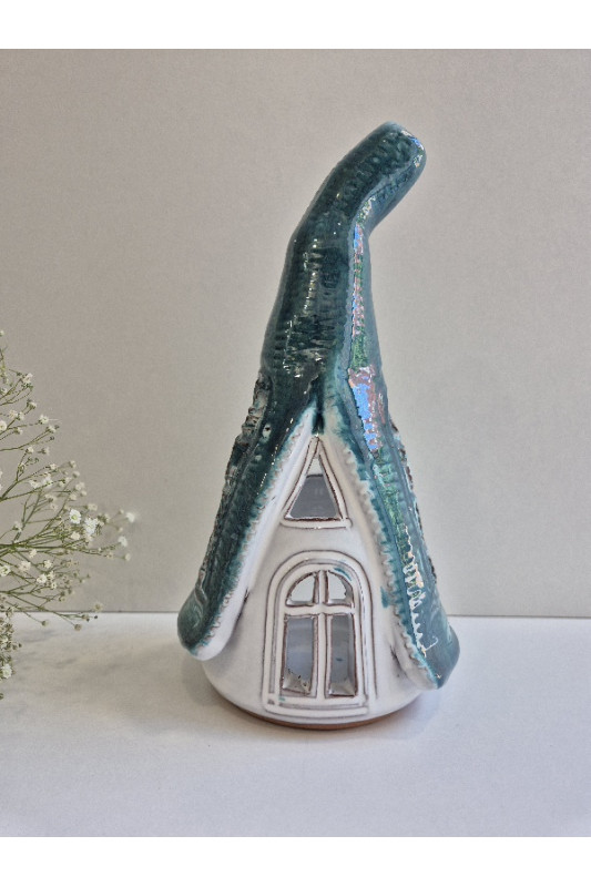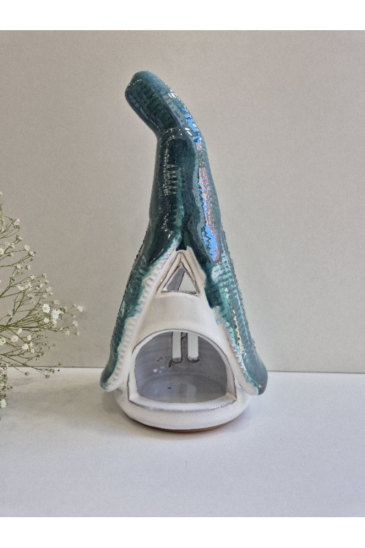 Lampion Chatka Krasnoludka "Biel z turkusem ''. Ręcznie robiona ceramika z Krety, 3000