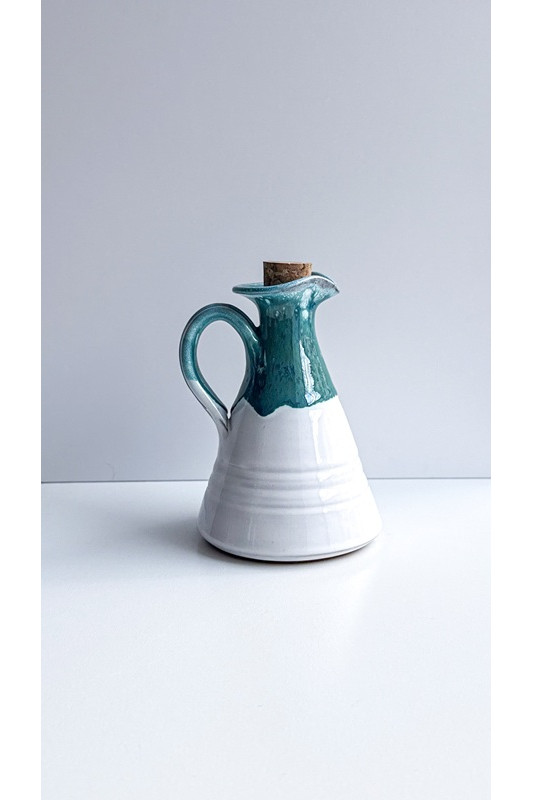 Dzbanek stożek mały "Biel z turkusem". Ręcznie robiona ceramika z Krety, 171