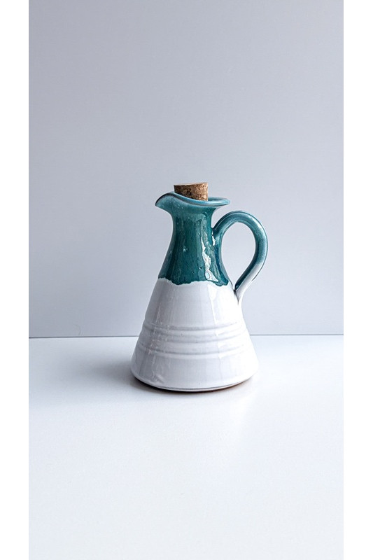 Dzbanek stożek większy"Biel z turkusem". Ręcznie robiona ceramika z Krety, 180