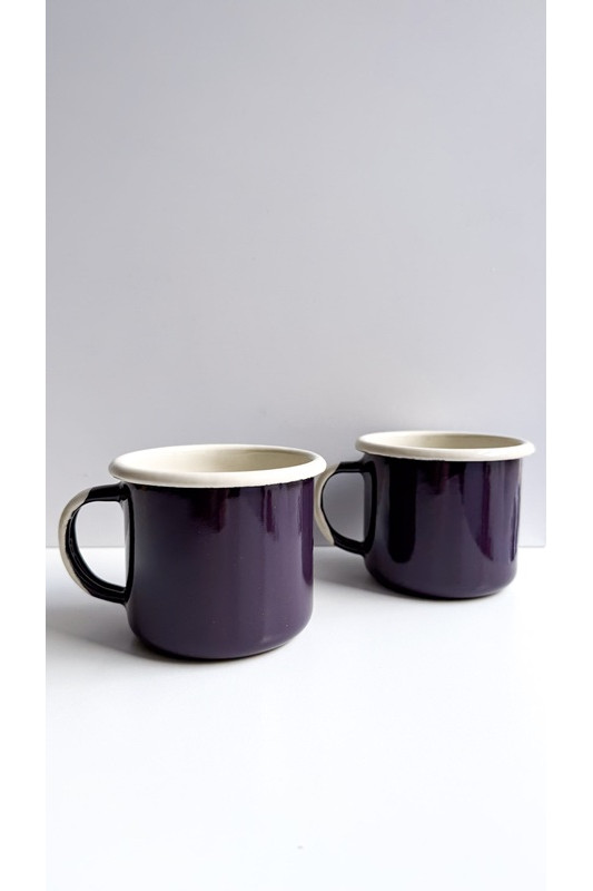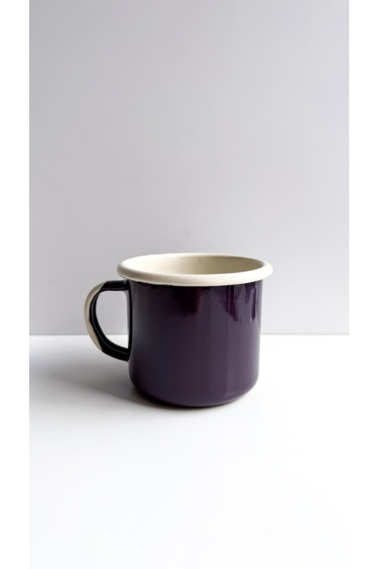 Emaliowany kubek prosty większy poj. 0,3 l bakłażan