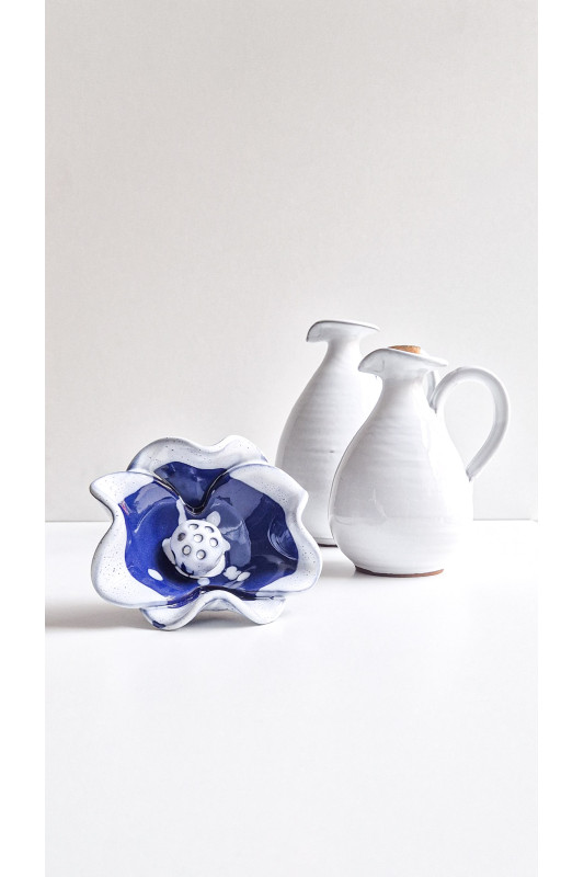 Kwiat ceramiczny największy "Kobalt z bielą''. Ręcznie robiona ceramika z Krety, 5035