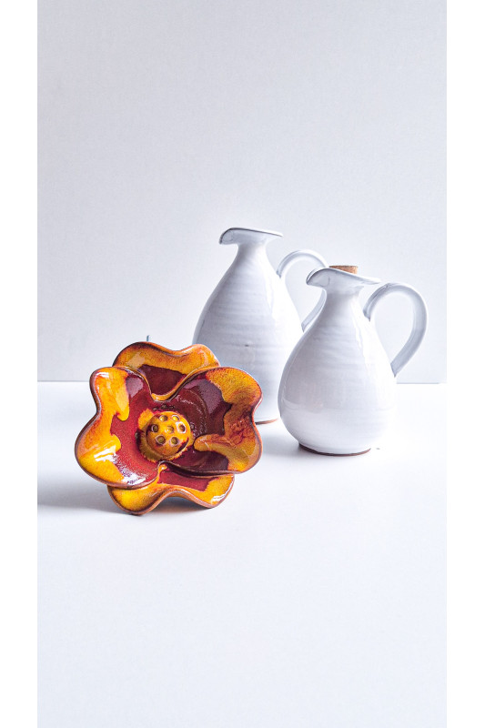 Kwiat ceramiczny największy "Czerwień z żółtym''. Ręcznie robiona ceramika z Krety, 5037