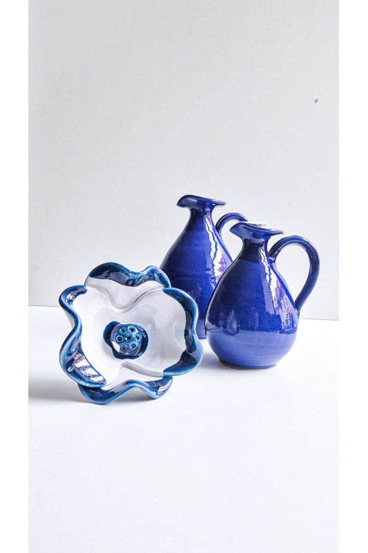Kwiat ceramiczny największy "Biel z niebieskim''. Ręcznie robiona ceramika z Krety, 5040