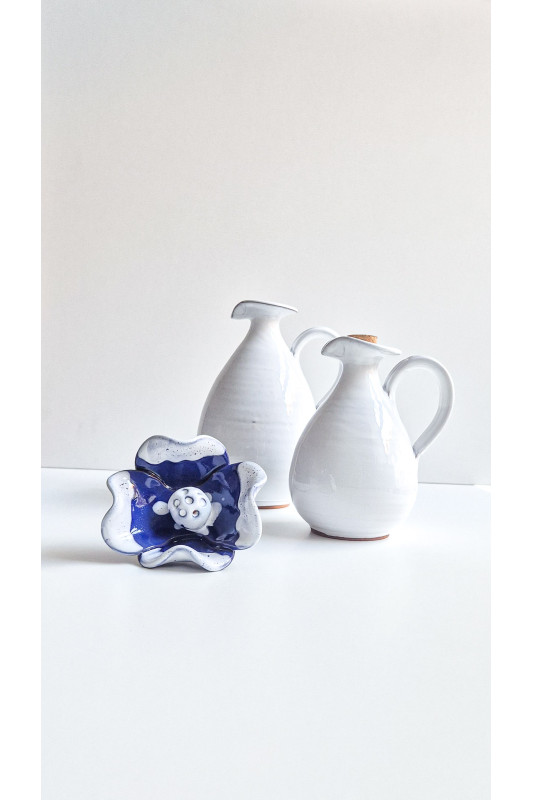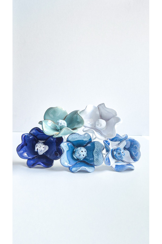 Kwiat ceramiczny średni "Kobalt z bielą''. Ręcznie robiona ceramika z Krety, 5051