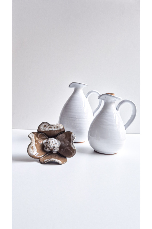 Kwiat ceramiczny średni "Kawa z bielą''. Ręcznie robiona ceramika z Krety, 5054